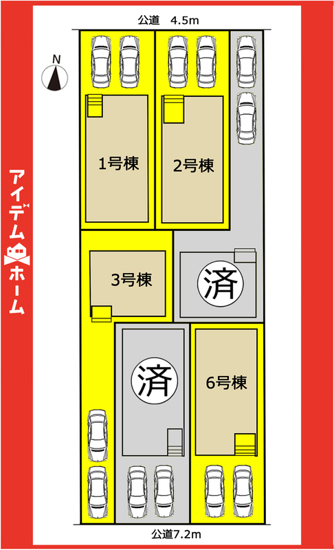 | 駐車場 | 2台 | 道路の幅員 | 南側7.2m、北側4.5m(公道) |