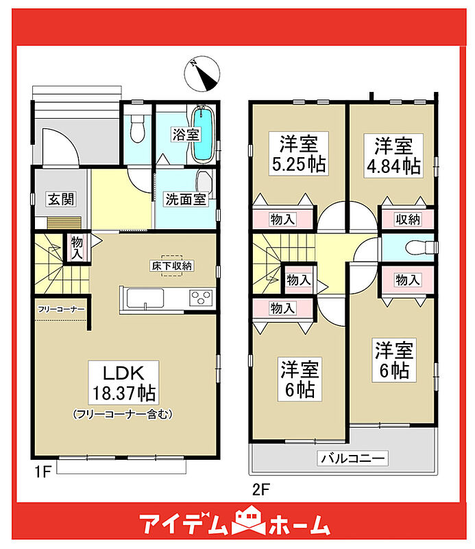 【充実】駐車2台、4LDK、フリーコーナー