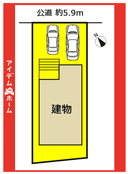 | 駐車場 | 2台 | 道路の幅員 | 北東側5.9m(公道) |