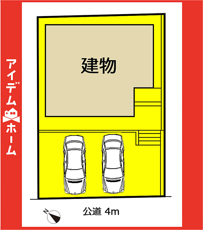 | 駐車場 | 2台 | 道路の幅員 | 南西側4m(公道) |