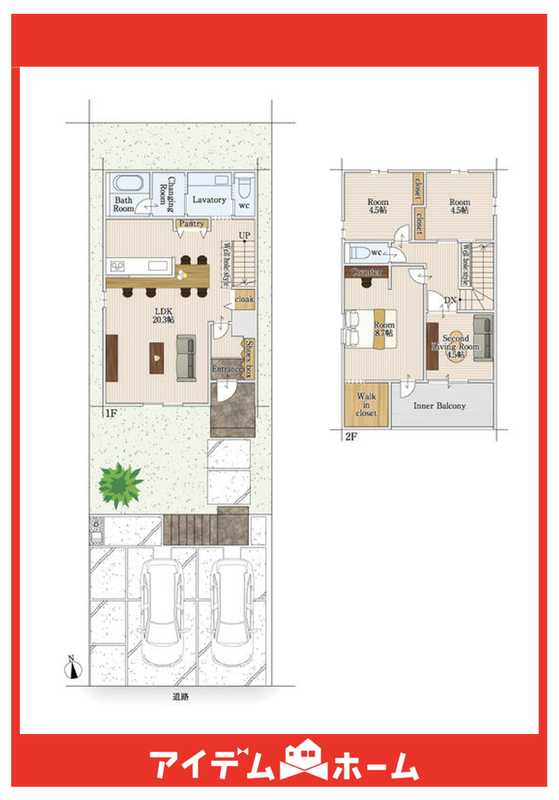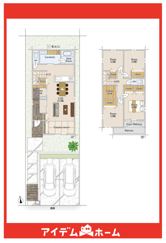 | 駐車場 | 2台 | 道路の幅員 | 南側8m(公道) |