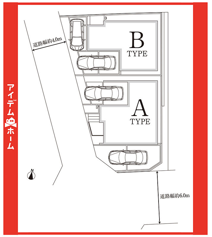 | 駐車場 | 2台 | 道路の幅員 | 西側4.0m、南側6.0m(公道) |