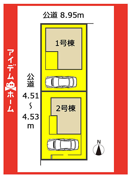 | 駐車場 | 1台 | 道路の幅員 | 北側8.95m(公道)、西側4.51~4.53m(公道) |