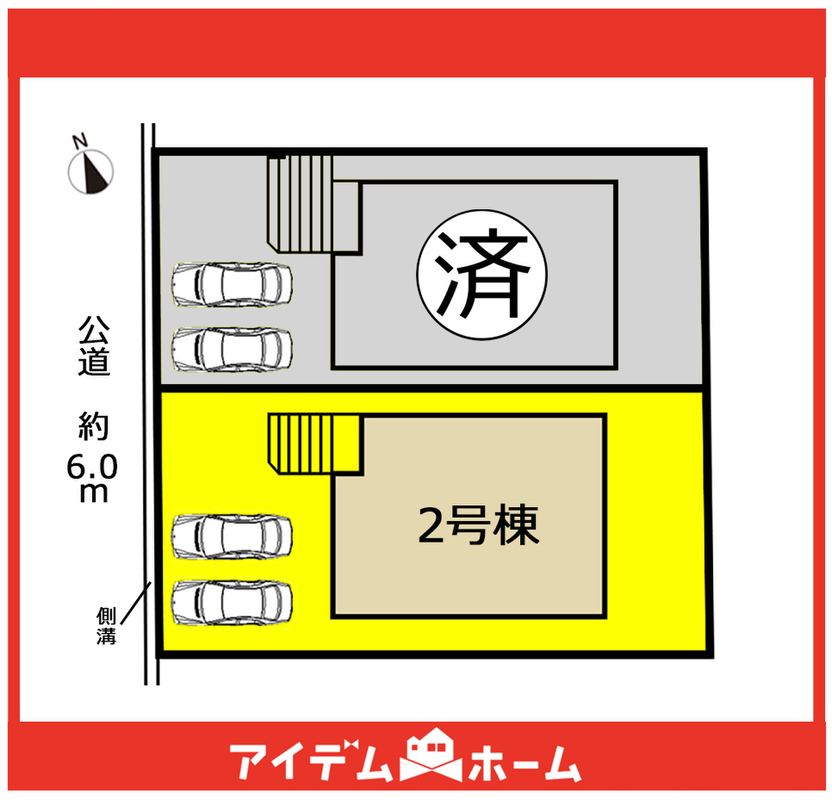 | 駐車場 | 2台 | 道路の幅員 | 西側6m公道 |