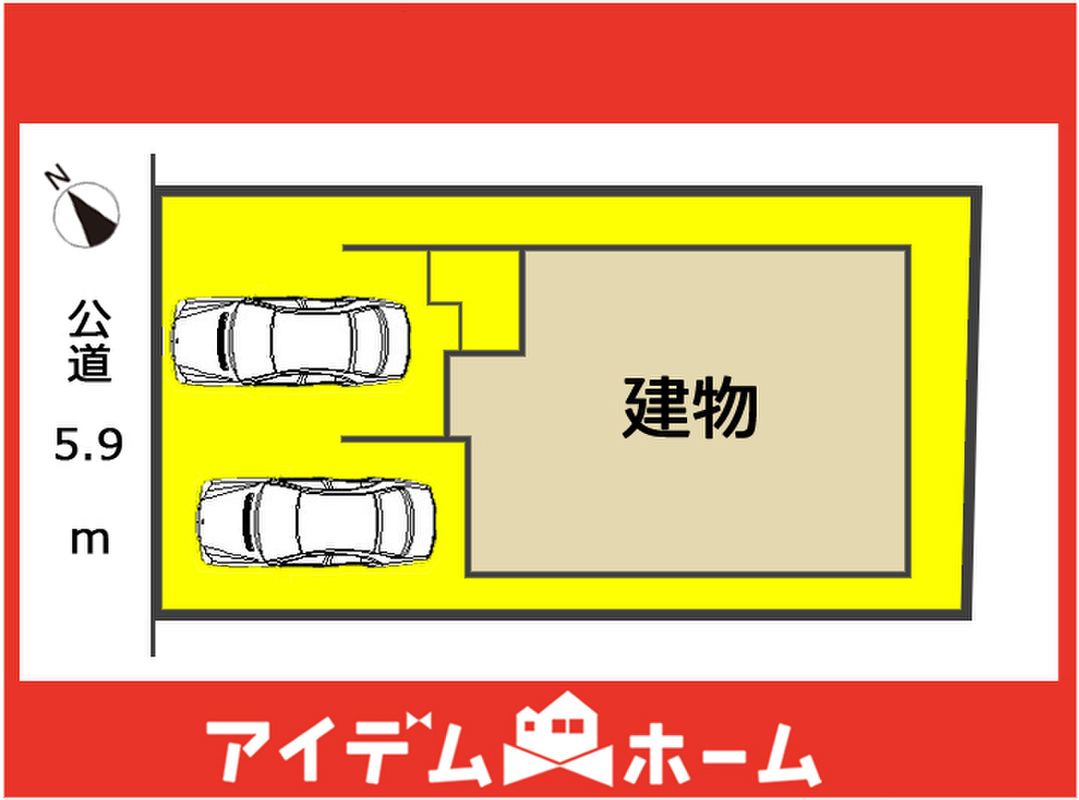 | 駐車場 | 2台 | 道路の幅員 | 北西側5.9m(公道) |