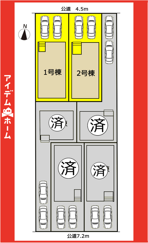 | 駐車場 | 2台 | 道路の幅員 | 北側約4.5m(公道)、南側約7.2m(公道) |