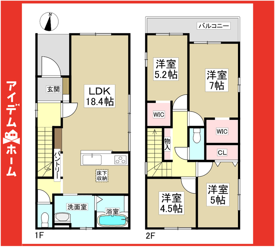 【充実】整形地、駐車2台、WIC、4LDK、食洗機