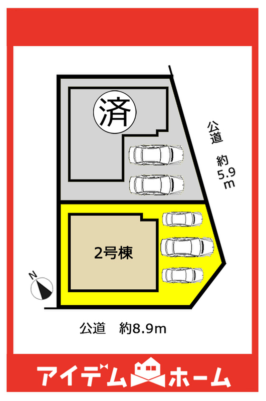 | 駐車場 | 3台 | 道路の幅員 | 東側5.9m、南側8.9m(公道) |