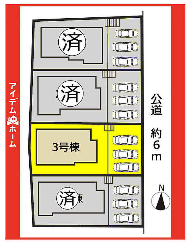 | 駐車場 | 3台 | 道路の幅員 | 東側6m(公道) |