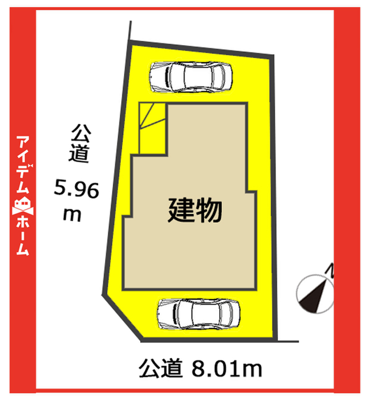 | 駐車場 | 2台 | 道路の幅員 | 南東側約8m(公道)、南西側約8m(公道) |