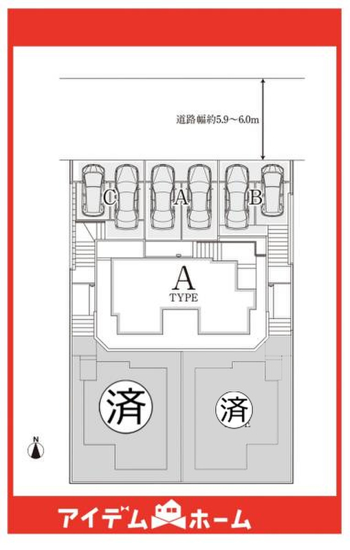 | 駐車場 | 2台 | 道路の幅員 | 北側5.9m(公道) |
