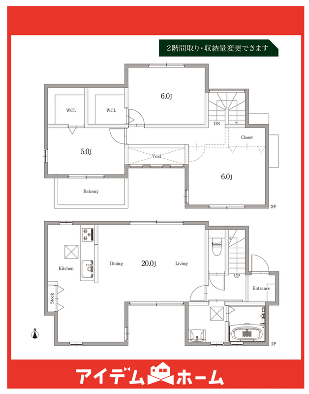 2階間取り&収納量は用途に合わせて変更可能!WIC×2完備!