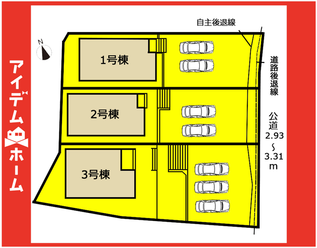 | 駐車場 | 2台 ~ 3台 | 道路の幅員 | 東側2.93m~3.31m公道 |
