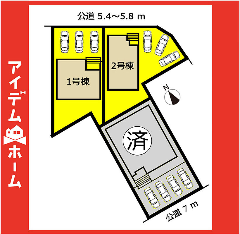 | 駐車場 | 3台 | 道路の幅員 | 北側5.4~5.8m(公道) |