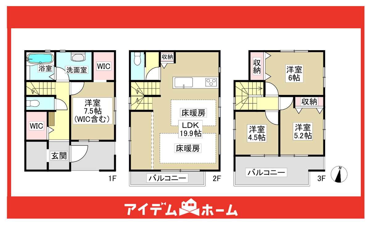 2部屋から出入り可能なバルコニー付き!床暖房付きリビング19帖以上!