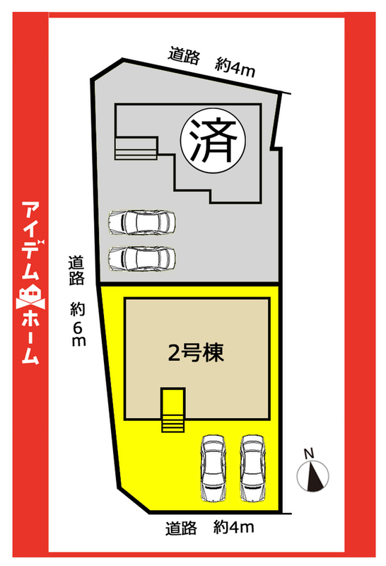 | 駐車場 | 2台 | 道路の幅員 | 西側6m、南側4m(公道) |