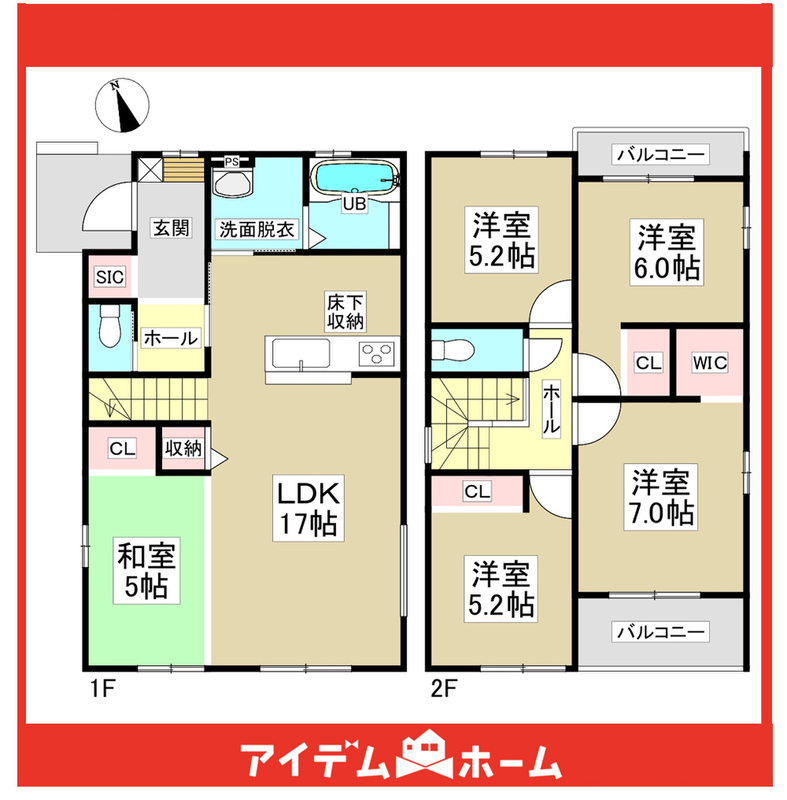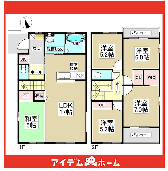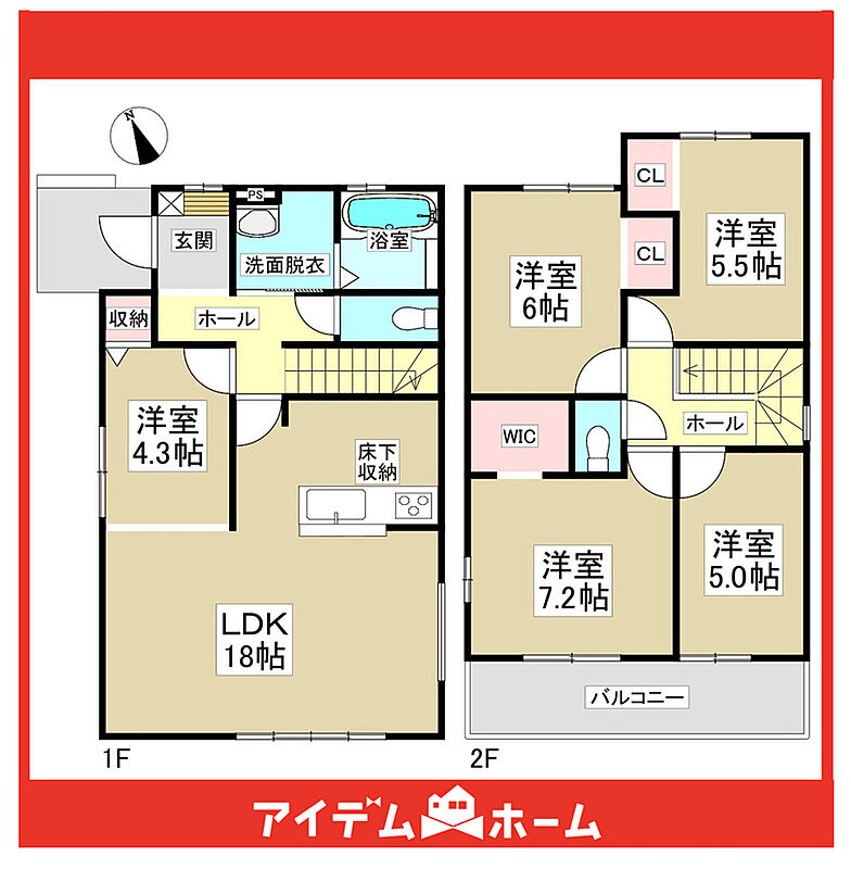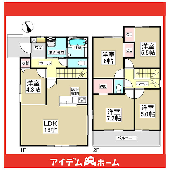 【充実】5LDK、ワイドバルコニー、駐車3台、床下収納、WIC、LDK18帖