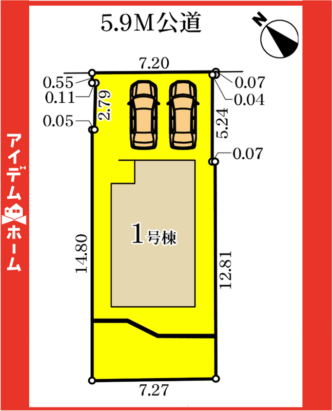 | 駐車場 | 2台 | 道路の幅員 | 北東側6m(公道) |