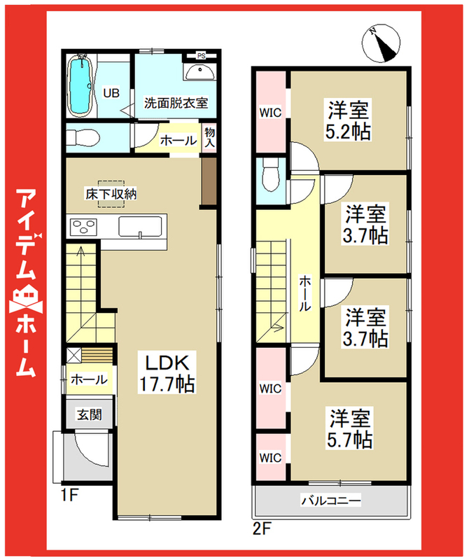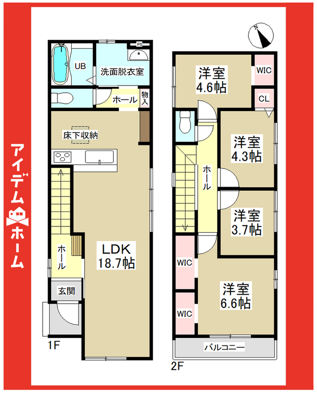並列駐車2台可能な整形地!収納便利なWIC×3完備!