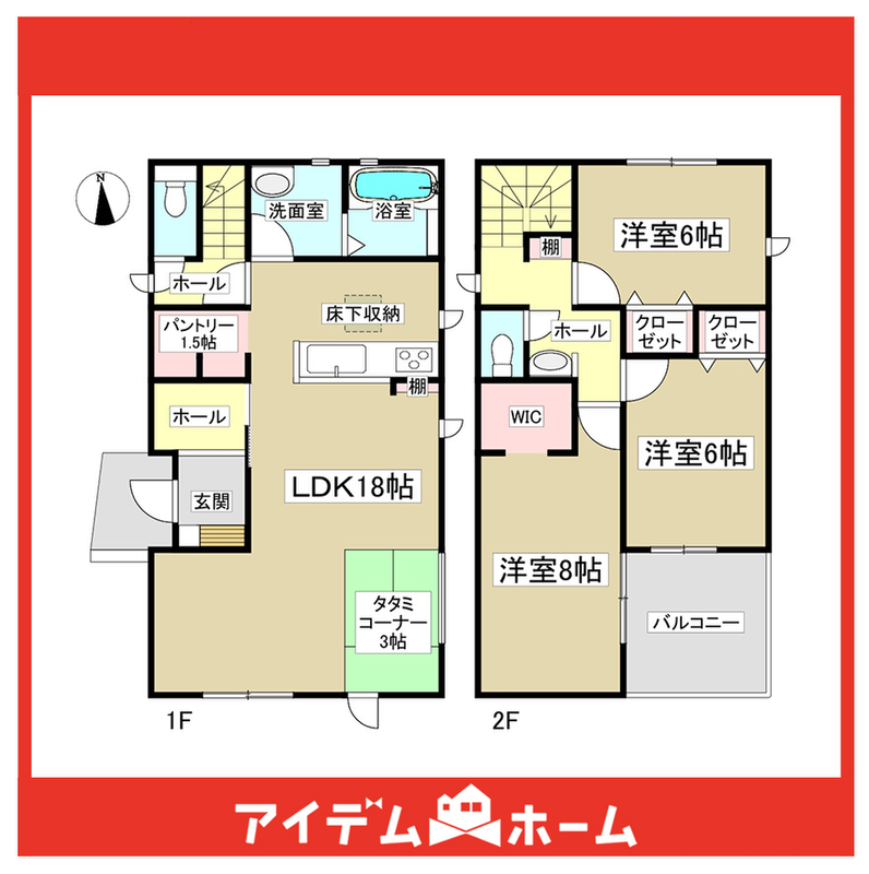 【充実】駐車2台、パントリー、WIC、畳コーナー