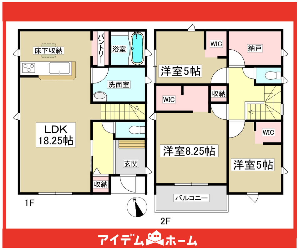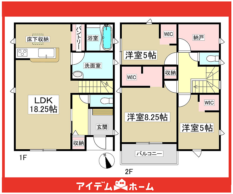 【18.2帖の広々LDK!】2階全室WIC完備&納戸付き!小中学校徒歩8分圏内!