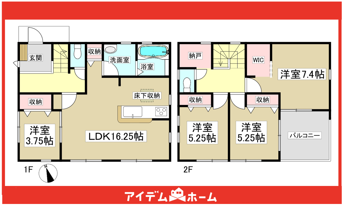 【充実】駐車2台、WIC、4SLDK、ワイドバルコニー