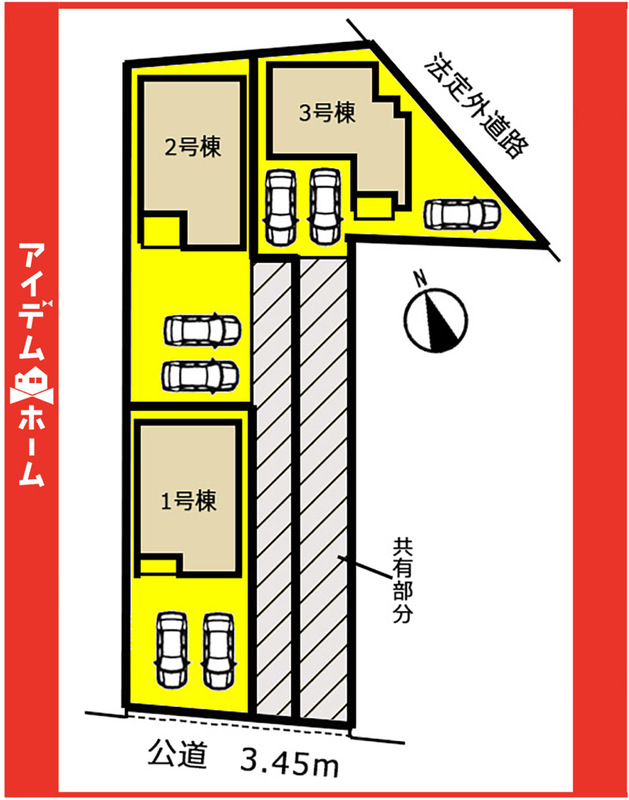 | 駐車場 | 2台 | 道路の幅員 | 南側2.91~2.93m(公道) |