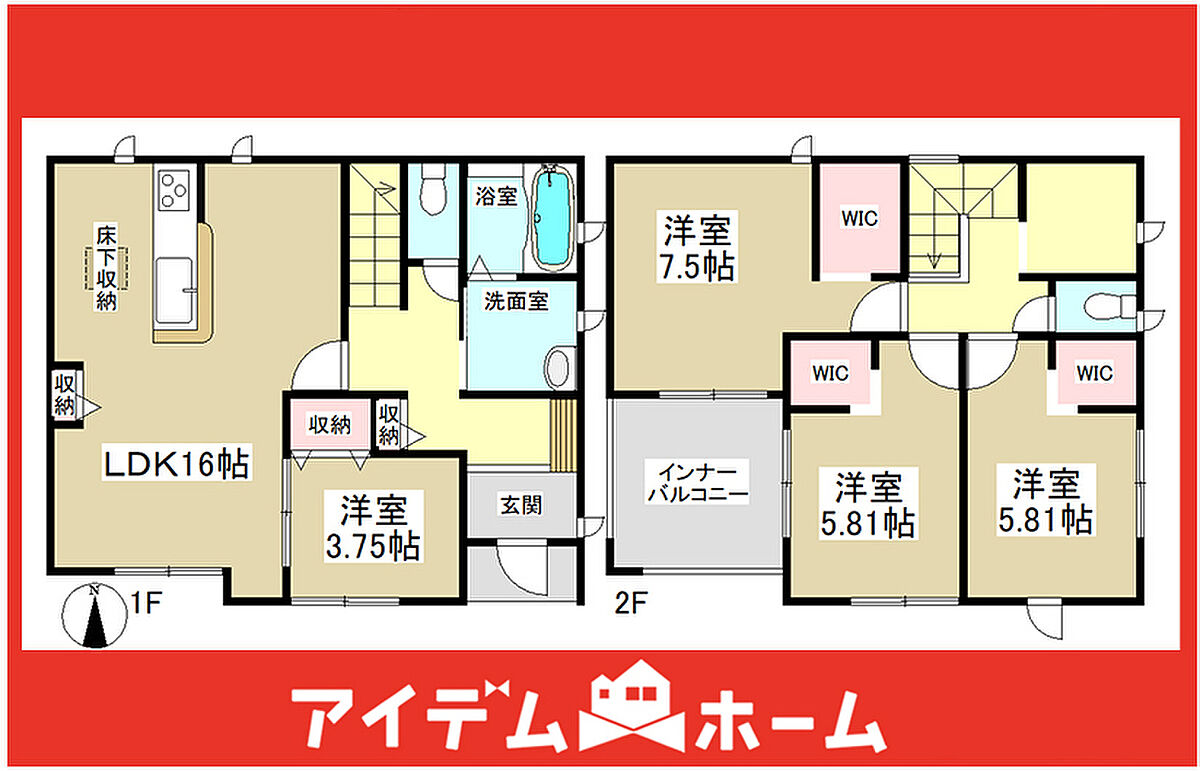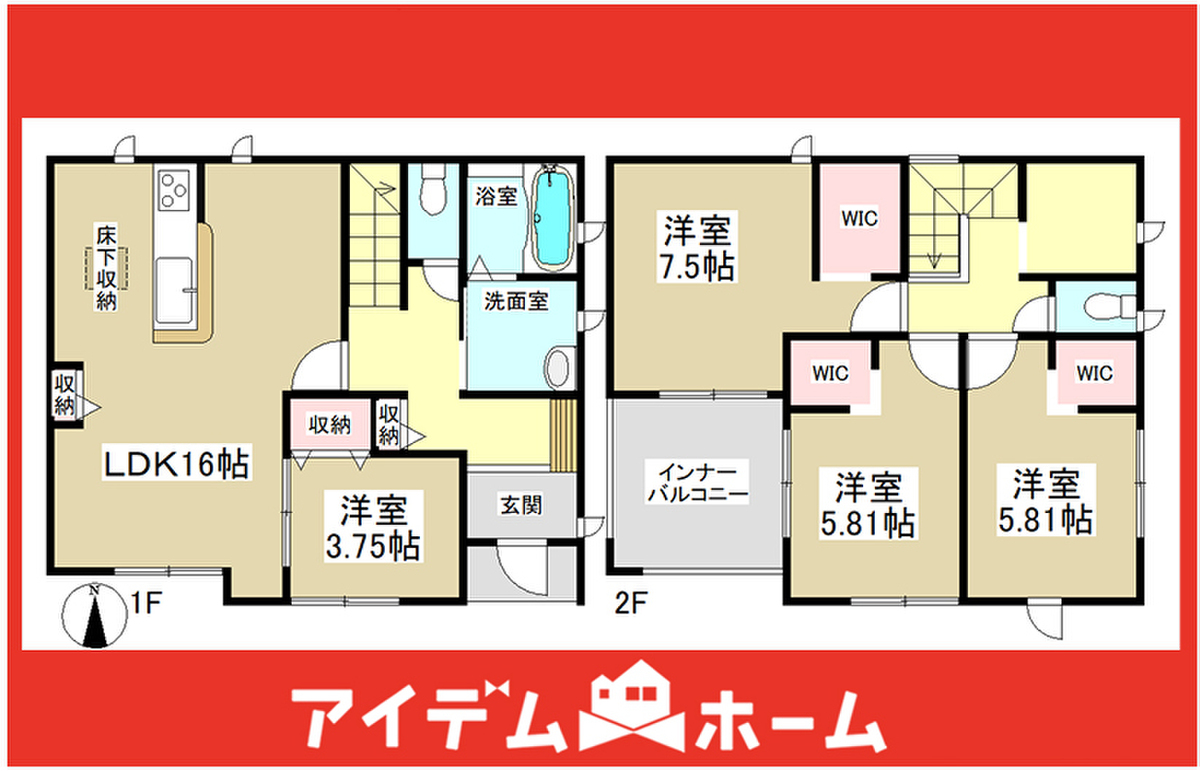 【充実駐車2台、WIC、床下収納、ワイドバルコニー