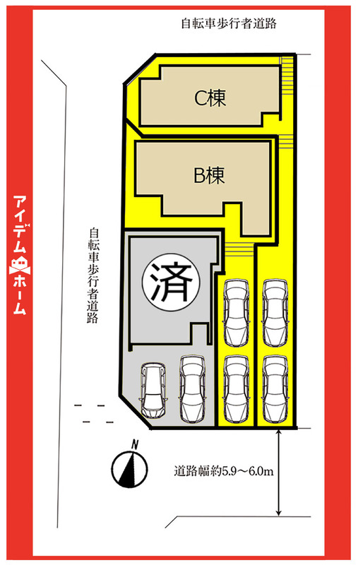 | 駐車場 | 2台 | 道路の幅員 | 南側5.9~6.0m(公道) |
