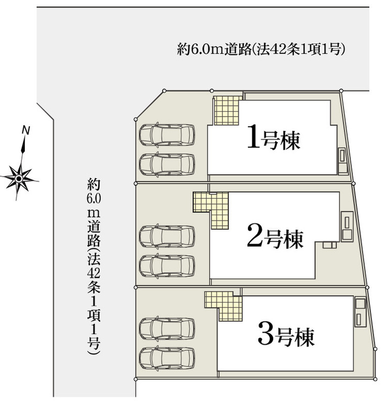 | 駐車場 | 2台 | 道路の幅員 | 北側6.0m、西側6.0m(公道) |