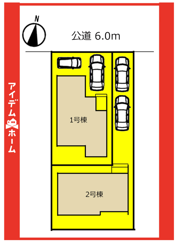 | 駐車場 | 2台 | 道路の幅員 | 北側6m(公道) |