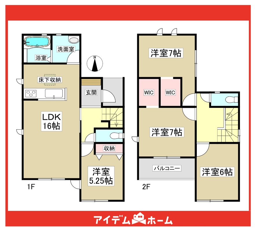 【WIC×2完備でお部屋スッキリ!】2階全居室ゆとりある6帖以上!