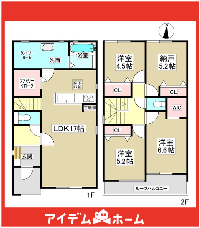 【充実】駐車2台、南庭、ワイドバルコニー、ファミリークローク、ランドリールーム