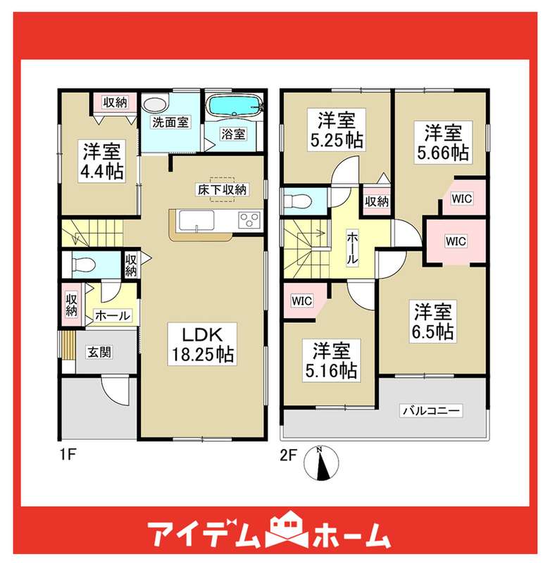 【充実】駐車2台、WIC、5LDK、LDK18帖、ワイドバルコニー