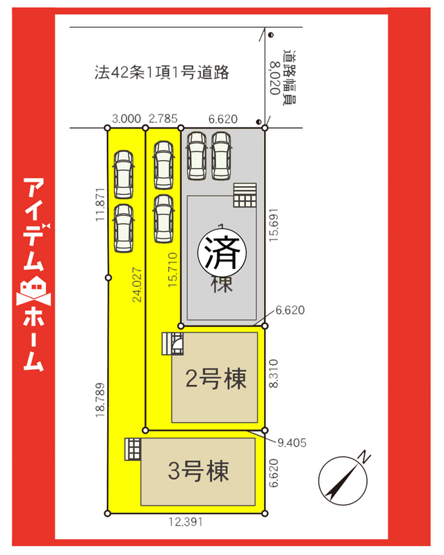 | 駐車場 | 2台 | 道路の幅員 | 北西側8.02m(公道) |