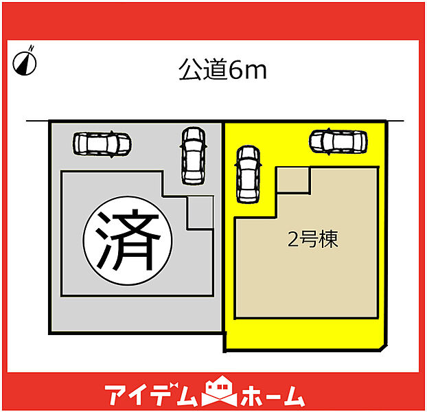 | 駐車場 | 2台 | 道路の幅員 | 北側6m(公道) |