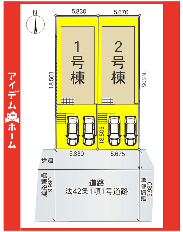| 駐車場 | 2台 | 道路の幅員 | 南側9.9m(公道) |