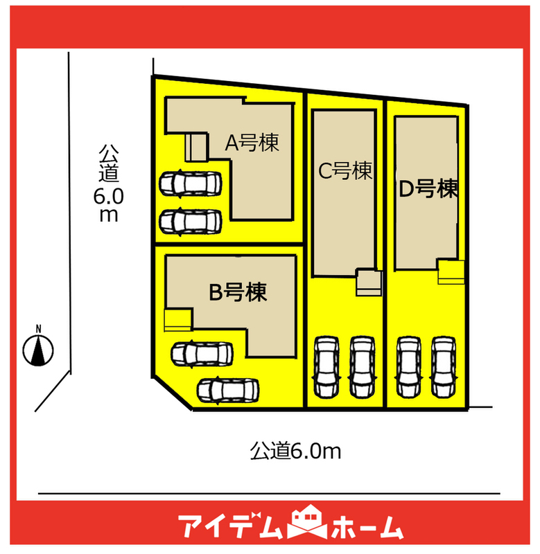 | 駐車場 | 2台 | 道路の幅員 | 西側6m、南側6m公道 |