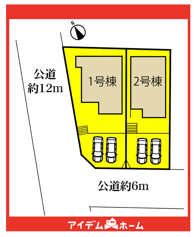 | 駐車場 | 2台 | 道路の幅員 | 北西側12m南西側6m公道 |