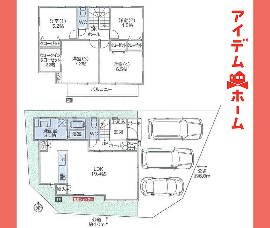 | 駐車場 | 3台 | 道路の幅員 | 南4m、東6m |