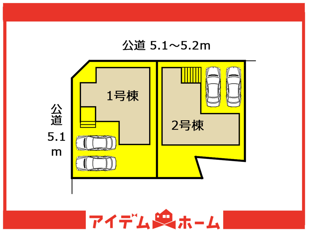 | 駐車場 | 2台 | 道路の幅員 | 接道1:北 幅員5.2m、接道2:西 幅員5.7m |