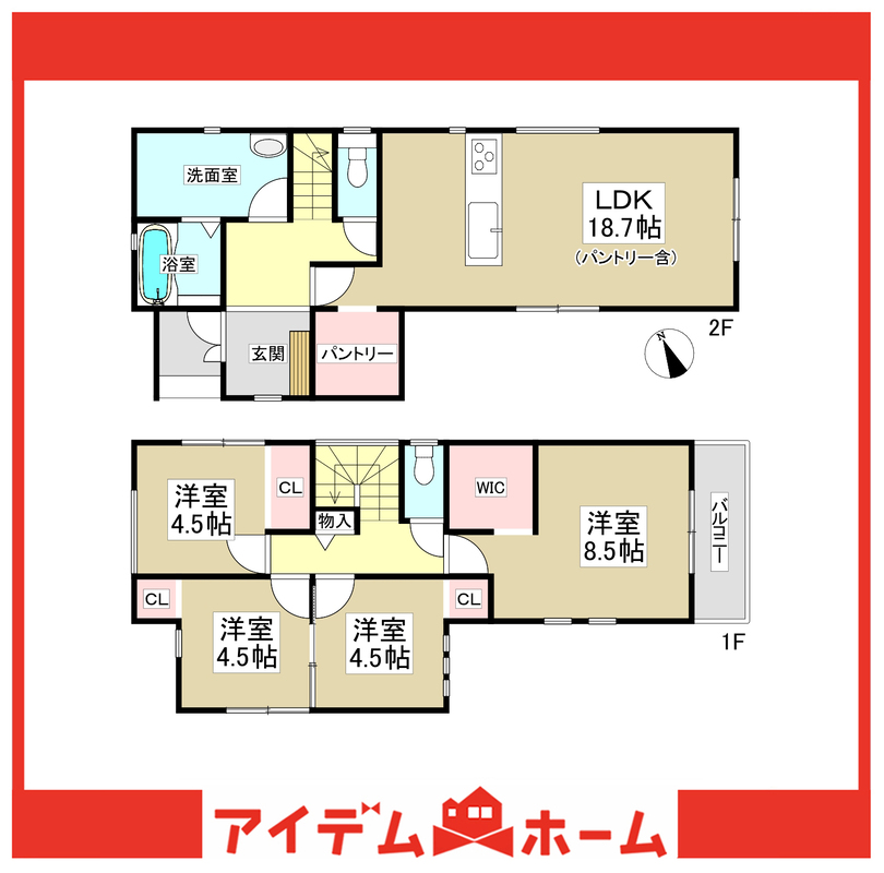 【充実】 駐車3台、WIC、パントリー、LDK18.7帖、LDK3面採光、角地