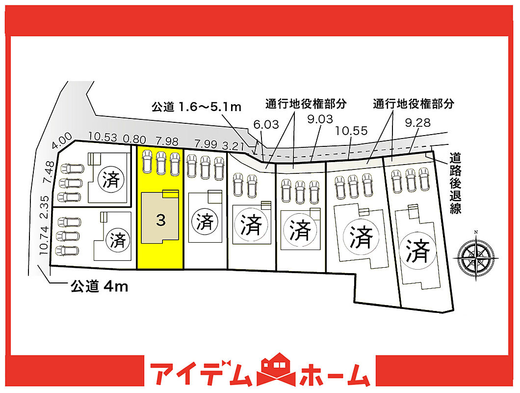 | 駐車場 | 3台 | 道路の幅員 | 接道1:北 幅員1.6m |