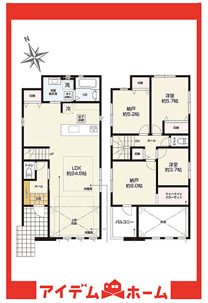 【充実】 駐車並列2台、WIC、食洗機、床暖房、リビング吹抜、LDK24.5帖