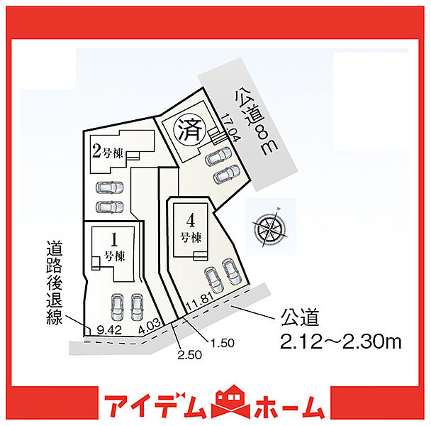 | 駐車場 | 2台 | 道路の幅員 | 接道1:南 幅員2.12m |
