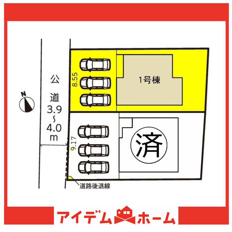 | 駐車場 | 3台 | 道路の幅員 | 接道1:西 幅員3.9m |