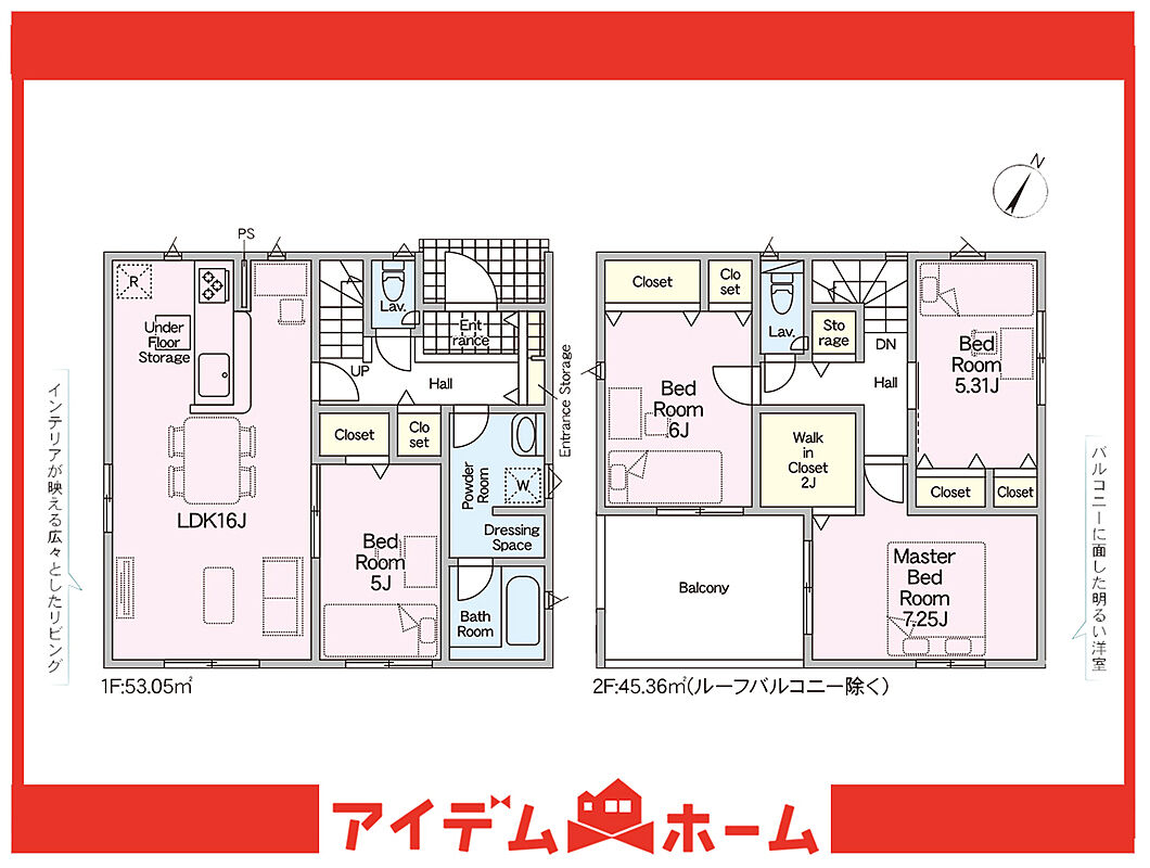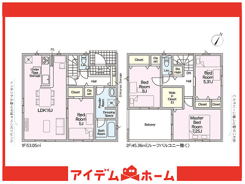 【充実】 駐車2台、WIC、LDK3面採光、全居室収納完備、ワイドバルコニー、南庭