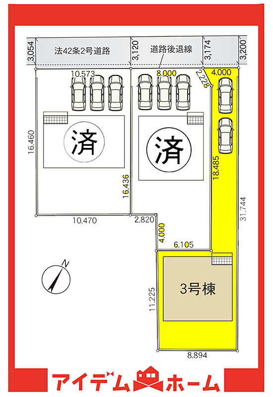 | 駐車場 | 2台 | 道路の幅員 | 接道1:北西 幅員3m |