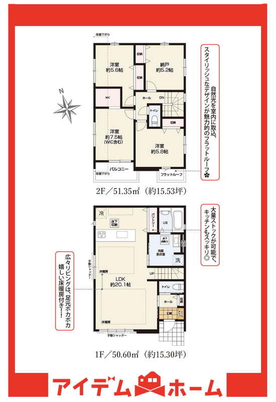 【充実】 駐車並列2台、LDK20帖、床暖房、食洗機、浴室乾燥、納戸、WIC、パントリー