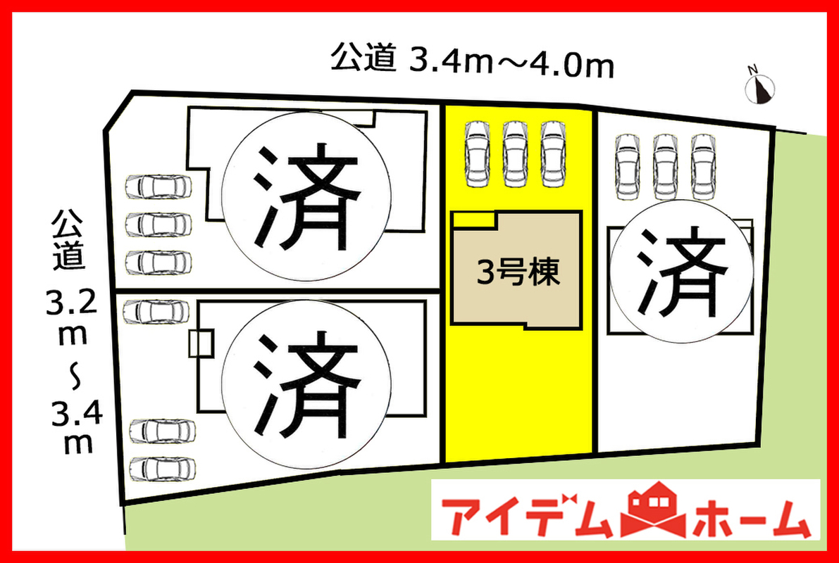 | 駐車場 | 3台(駐車3台可能なカースペース) | 道路の幅員 | 北側 3.4m 公道 |